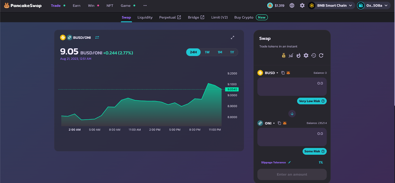 For example, you could use the decentralized exchange PancakeSwap to exchange your BNB into ONI tokens…