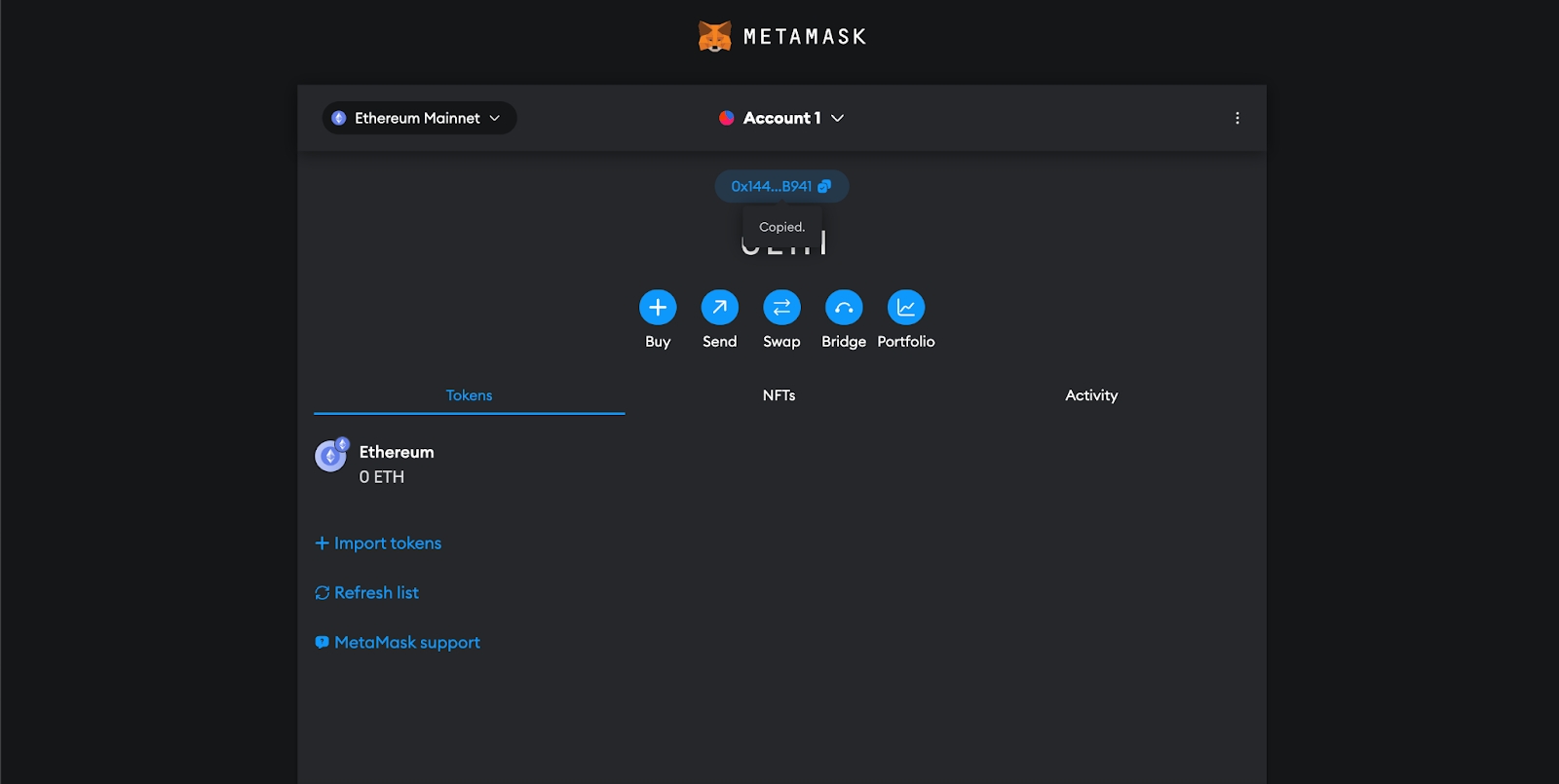 Step 1: Determine Your Wallet Address. Before you can add funds, you need to know where to send them. Your wallet address (sometimes also referred to as the public key) is analog to your Bank account number. To find your MetaMask Wallet Address, click on the account name at the top of your MetaMask dashboard. This will copy your unique address to your clipboard.