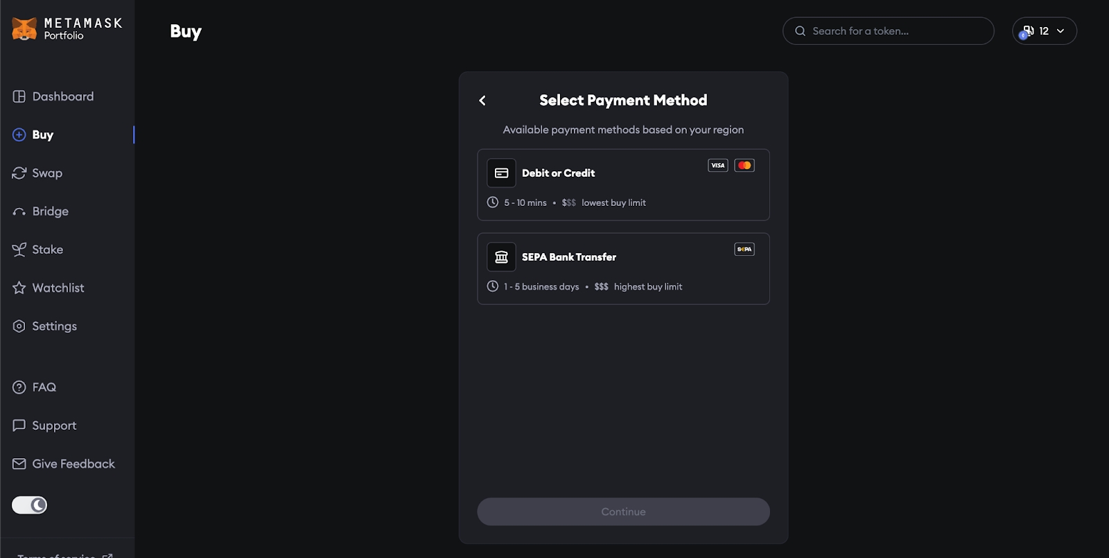 Option B: Purchasing Directly through MetaMask: Some regions and users have the option to buy Ethereum directly from within MetaMask using a debit card or bank transfer. To do this: